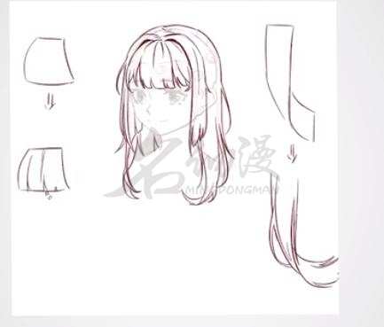 头发是表达人物个性和特点不可缺少的部分。 即使你能画出好的面部表情,但没能很好地画出人物的头发,那么角色的魅力就没法表现出来了。不管男性或女性头发也是可以分为短发、长发、齐刘海、斜刘海等造型,头发的外观根据长度和角度而变化,但将头发分为刘海、侧发和背发的基本思路并没有改变。那下面我们来看看女性画头发教程吧!