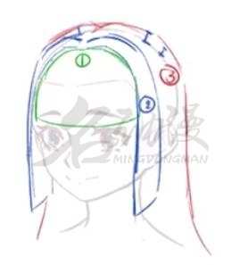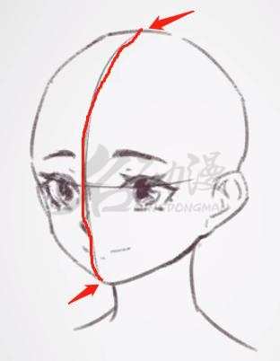 1.画头发技巧:画出头顶到下颚的中心线的画法