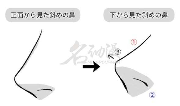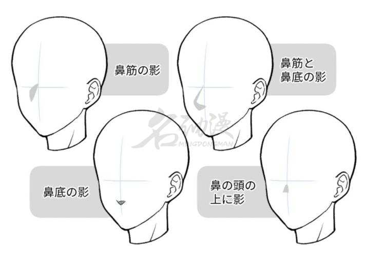 鼻子本身不是用线画出来的,而是用阴影的表现手法技巧,这样鼻子的存在却坚定地出来了。这也是漫画和漫画插图中经常使用的表达方式。理解为立体效果,因为阴影和亮面的对比。