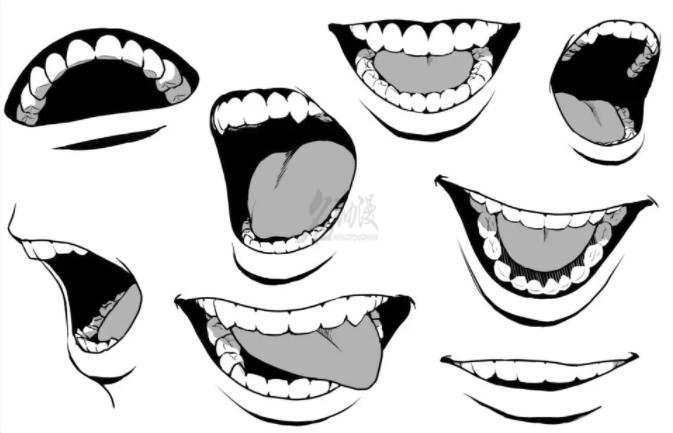 在插画和漫画中嘴巴的动态很鲜明,例如在张嘴O字形、闭嘴时一字形、咬牙形等是插画和漫画人物活动最多的部分。