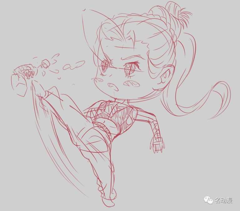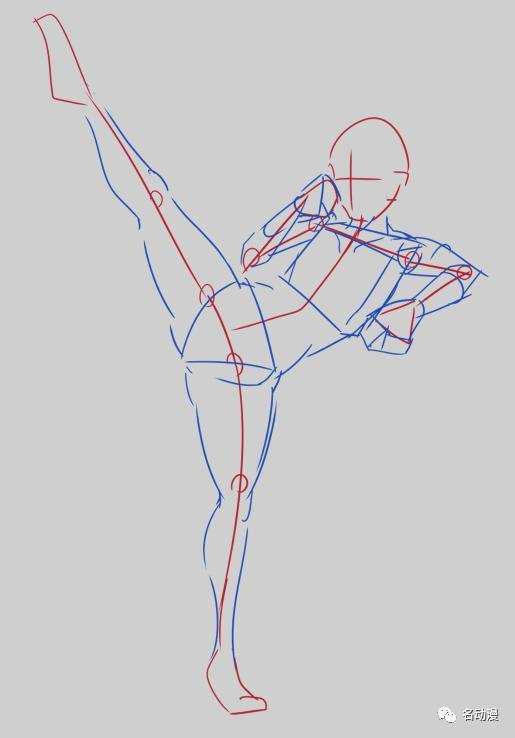 然后在照片动态的基础上,进行觉得好看又合理的夸张化,描绘出基本的火柴人动态走势: