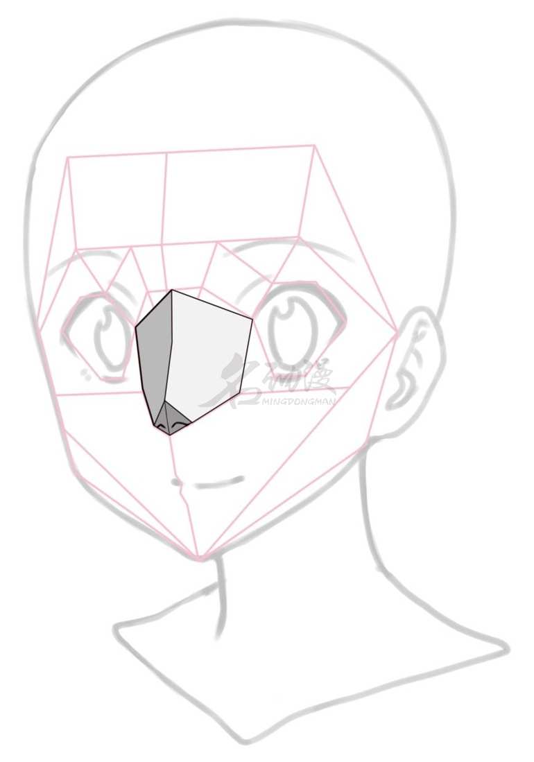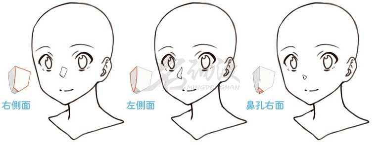 当然在很多二次元人物中的鼻子,还可以更简化为三个块面。