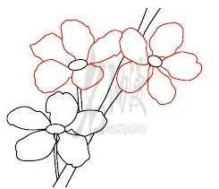 第一步:首先画出樱花的树枝轮廓和樱花的花茎(红线)。如图所示: