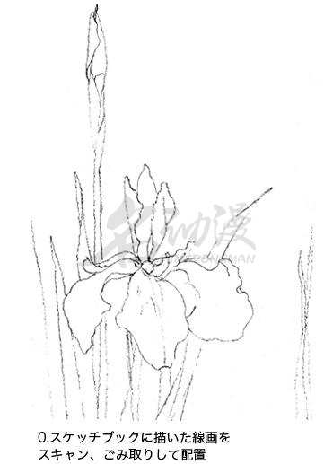 第一步:首先在新建图层上用曲线条画出花朵的轮廓和叶瓣的轮廓。如图所示: