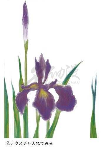 第二步:再新建一个图层在上一步花朵的轮廓上填上颜色,先大体分大色块:花瓣为紫渐变,靠近花心处有黄色部分,叶瓣翠绿色。特别注意新建一个图层更好的修改步骤,防止将不需要的步骤给修改。如图所示(燕子兰):