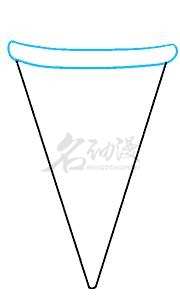 第三步:在刚刚曲线的头尾分别再画两条向上的曲线,且也在顶部画出两条曲线,并且将两条曲线的头尾都用小曲线连接。这样一个冰激凌筒就完成啦。如图所示: