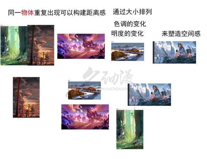 其实也可使用透视来塑造空间感的。那什么是透视呢?简单来说就是视觉上的近大远小、物体遮挡关系变化而形成的透视。