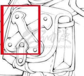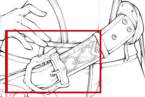 好的线稿,哪怕不上色也能让观众看出层次、厚度、空间感与立体感,哪怕是一颗小纽扣也是如此,线条不是一层不变的,而是有轻重缓急、虚实、粗细之分的。下面举几个例子,如图:金属扣、上层皮带、下层皮带、衣服,这几层之间可以通过虚实、卡点、外粗内细,线的层级来表现。