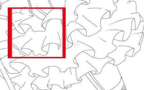 下图的线稿一条道走到黑,无节奏、无变化、无卡点、无层级、无虚实、断断续续。
