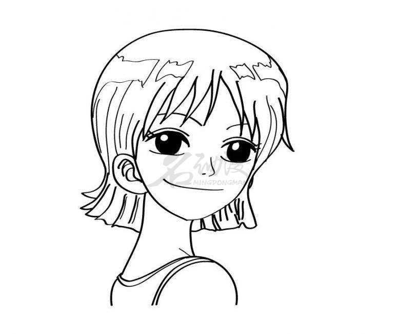 第五步:这一步要画出娜美的头发丝,丰富画面,然后画出娜美的背心。到这里,娜美的草稿就绘制完成了。
