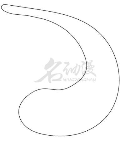 第一步:首先,绘制一个形状看起来像一个大且向后倒的“C”,它的顶部很薄,然后随着向下变厚,直到它到达底部类似的大圆圆。如图所示: