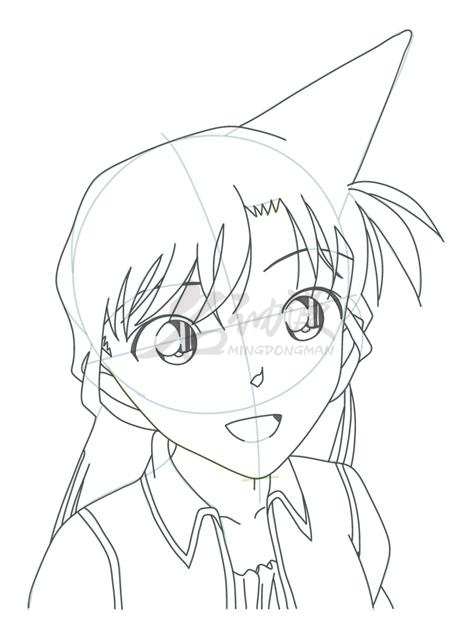 第二步:增加细节,将小兰的刘海、衣领以及披散下来的头发概括出来,然后画上眼睛、瞳孔等。