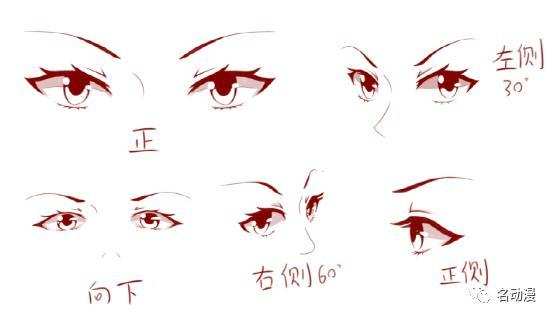 其他不同角度的眼睛会随着脸转向的角度逐渐压缩转向那边眼睛的形状,转向的角度越大压缩就越严重。