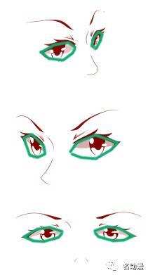 愤怒:眉头跟眼睛都向里挤压,上下眼皮中段位置都会稍微遮挡住一点瞳孔,就能营造一种眼神凶凶的感觉;