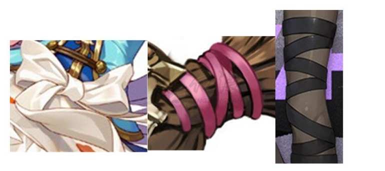皮带、领口、袖子、鞋口、丝袜等等,这类A覆盖住B的,要考虑它本身的厚度以及根据身体朝向而变化,比如袜子要考虑是否紧身和皮肤相接的地方会陷进去等等。