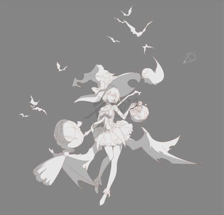 1.线稿调色:根据主色调来选择线稿颜色。例如下图,女巫的主色调为橙色,那么线稿的颜色可以调成偏暖色调的颜色。
