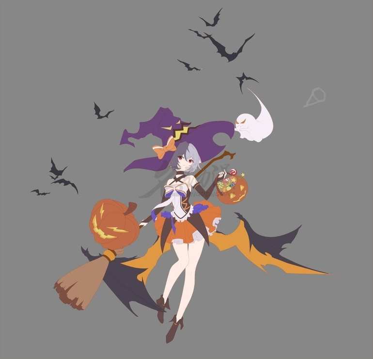 我们来回顾一下上期的内容:我们学到了不同方向的光,产生的情绪也不同,立绘一般以正上方靠左或右。打光时还要考虑被投影的物体的体积,如被投影的物体是圆柱形的,那投影应该是弧线弯曲随着圆柱而转折等等知识点。最后我们运用所学知识给女巫打上了光,如下图所示: