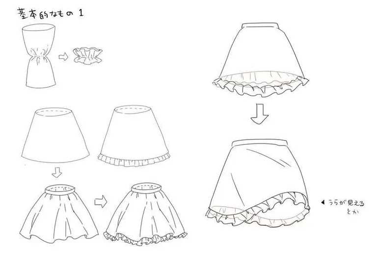 在画动漫人物衣服的时候,画裙子也是很多初学者的盲点,小编也给大家聊一下画裙子的方法。裙子主要还是褶子的问题,我们通过下面几张图去了解下: