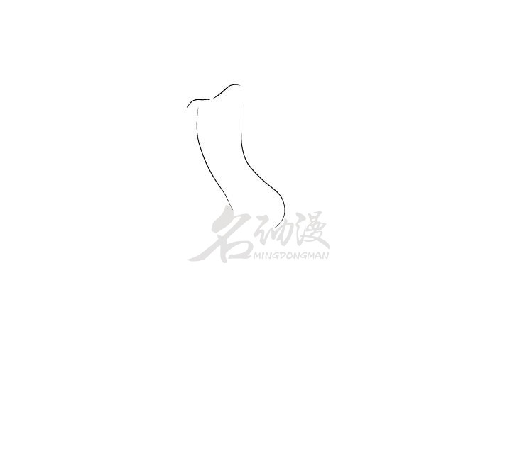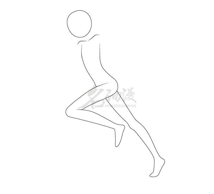 第三步:画腿时,一条腿弯曲成一种向前的箭头,另一条腿伸直,与身体的角度大致相同。弯曲腿上的脚可以被拉到一个相当自然/放松的位置。伸出的腿的脚将离开地面,应该放在脚趾上。如图所示: