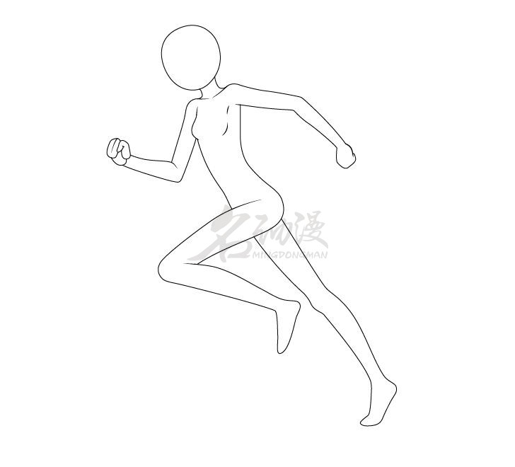 第一步:人物在奔跑时,躯干是略微前倾的。如图所示: