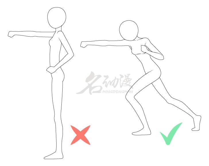 首先,来看看下图的对比,同样是出拳的动态,第一个看起来像是一个人直接伸出手臂,动态上硬邦邦。而第二个从动态上看起来像是他们实际上在对打发感觉。想要正确传达想要动作效果,人体的动态是非常重要的。