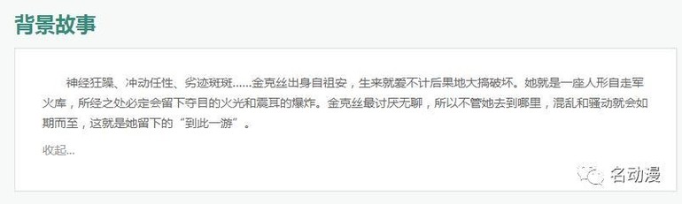 这就要求我们要多去了解人物的背景故事,比如具体到金克斯的官方背景故事里,她的人物形象是这样的。