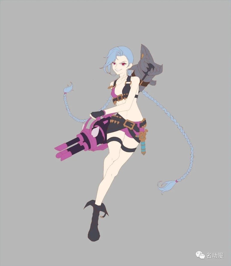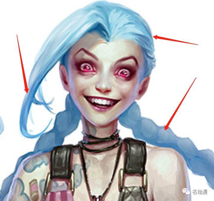 具体到金克斯的头发颜色,根据之前的介绍,我们找到的参考图是这张。