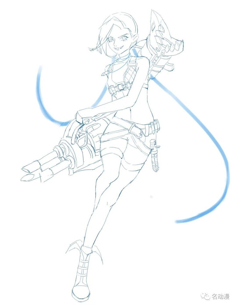 说简单,因为金克斯也算是热门角色了,网上官方图和同人图随处可见。