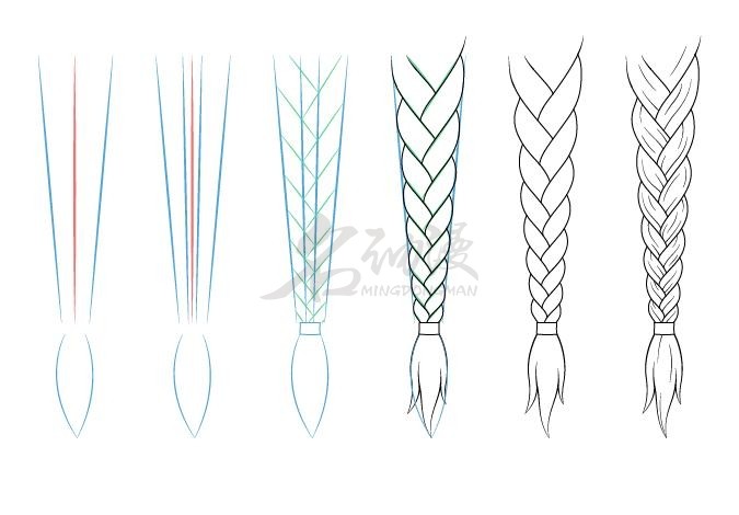 2.画麻花辫技巧:画自然的垂直麻花辫