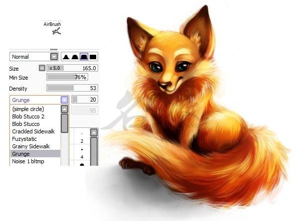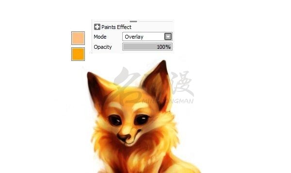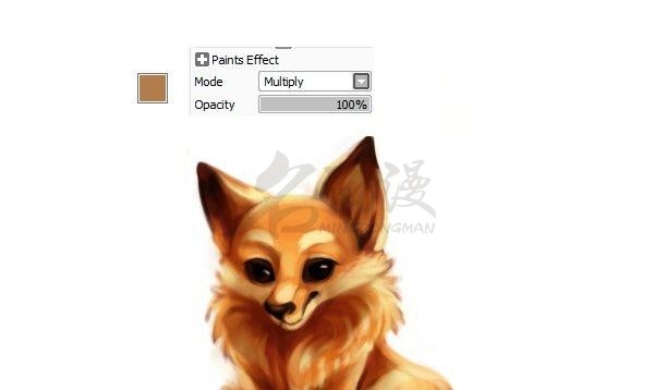 选择一个喜欢的颜色,用涂抹笔触或者排线的方式涂画小狐狸的色彩,然后用其同色系的深色绘制背部的花纹。