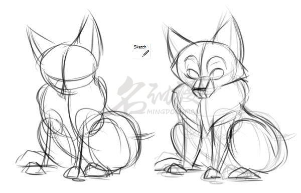 根据上面的分析,我们可以很容易地勾画出小狐狸具体的大小比例形状了。