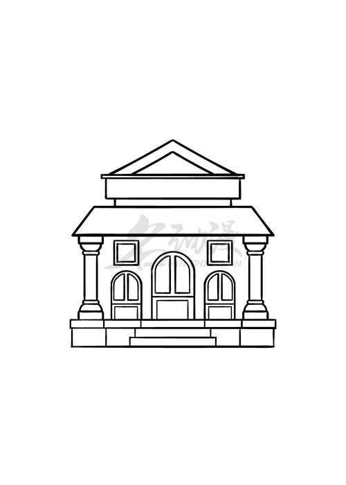 第五步:窗户绘制完毕啦,我们就可以在中间画上好看的弓形门,这样房子的线稿就画好了。