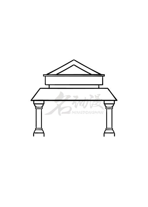 第二次:我们接着第一步画出房子的屋檐以及承重柱,为了造型更加丰富,我们的承重柱可以采用方圆结合的样式来塑造。