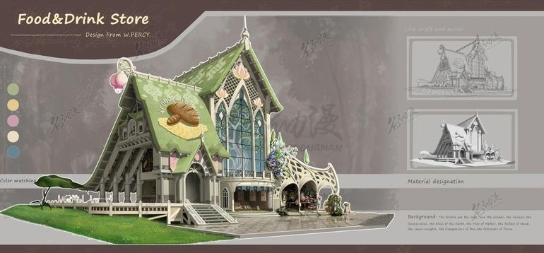场景原画的情况稍微复杂一些,既有像人物立绘一样比较稳妥的透视效果。