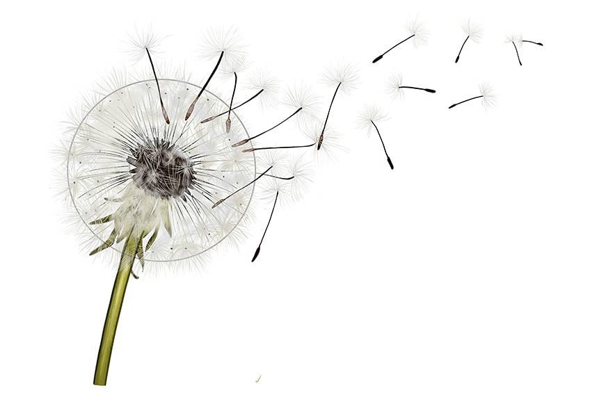 提示:随着种子离蒲公英主图的距离越来越远,它们的尺寸应该要画出越来越小的效果。