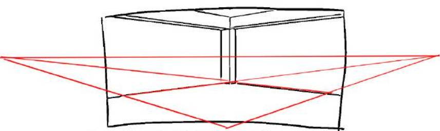一般的透视教程都是以消失点来教学的,所以按照这种教程,当我们画好了一个草稿,我们得先判断是几个消失点,才能明白这个图到底应该是一点透视还是两点透视还是三点透视。但是不熟悉或者当物品多了时候,就很难判断这个图到底是几点透视。