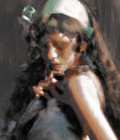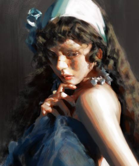 06、整理转折面。经过上面五个步骤,画面所有的调子就全部铺完了,剩下就是整理一下人物的结构转面就可以了。塑造方式和素描一样。