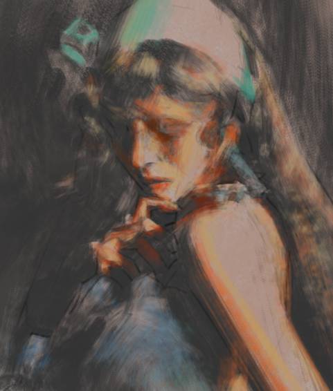 03、灰调子。画出灰调子,画的时候注意人物面部固有色的色相变化。