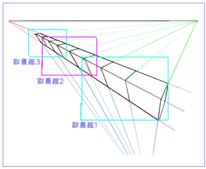 透视的两端变形比较严重,可以看取景框1和取景框3。