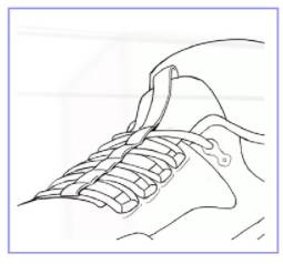 蓝色标注了空间节点,左右节点对上透视线;弧线分段画,不要纯弧形,这样不好对透视线;鞋带不要画成平行的。