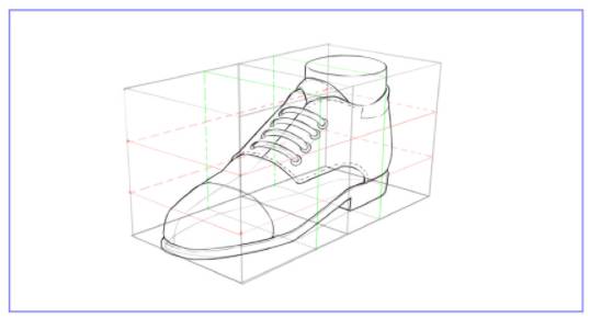 我们从鞋底开始画鞋的体积,因为我们已经标注好了比例线,所以非常方便我们计算节点。