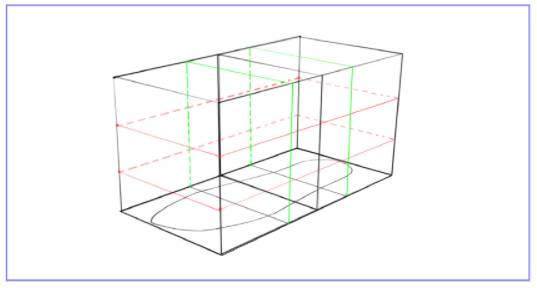 从草图大师的模型中我们可以总结一下:空间中等分线段离消失点越近,长度越短,反之则越长。