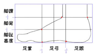 好啦,有上述的准备工作。我们现在开始就来画一些我们的练习吧,在画之前呢我们先明确一下人体脚部的比例关系。从长度来看,足掌,足弓,足跟各占三分之一;从高度上看,脚踝,脚背和脚趾高度各占三分之一。