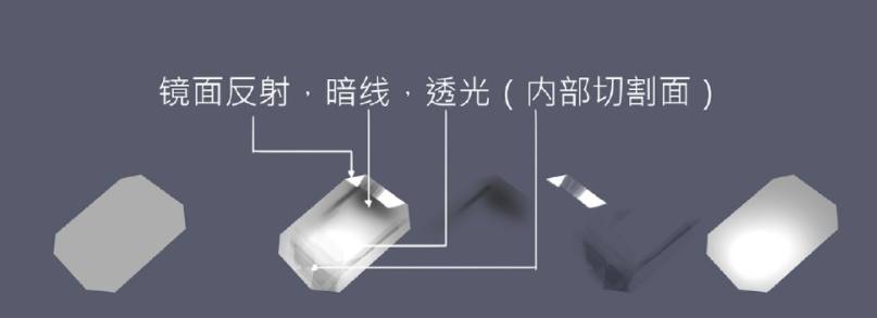 宝石类的这种半透明材质,在关系上需要注意的地方有三点:镜面反射,暗线,透光(内部切割面)。