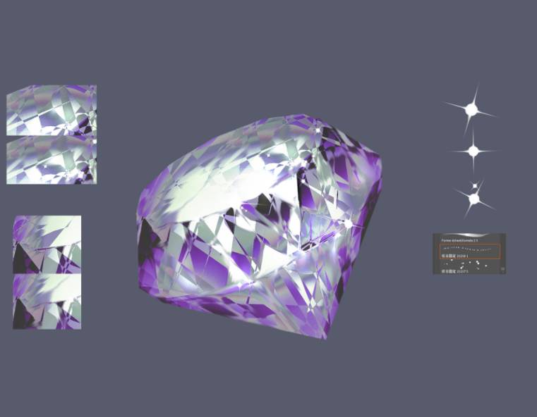 自然结晶的纹理与人工切割类以,用有压力的笔刷多次堆叠就可以实现。