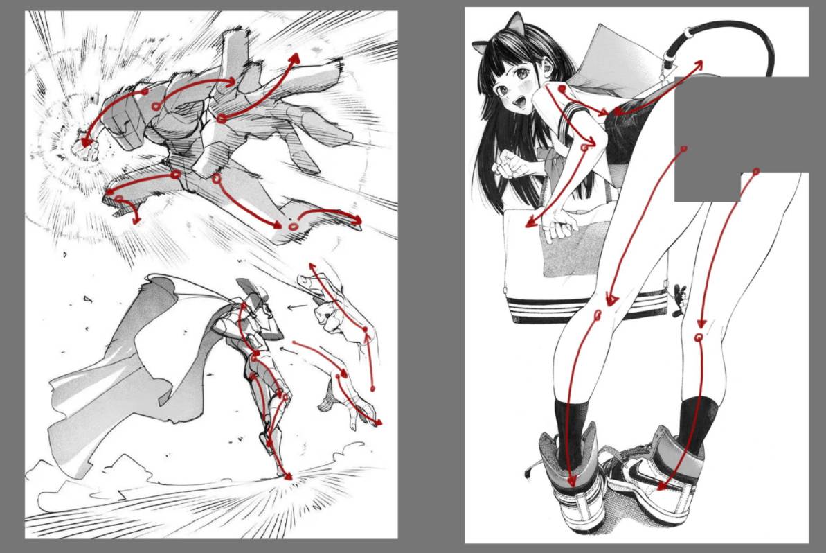 通过这些图也不难发现,事实上每一个里的弧线的转折处,都会存在一个强弱冲突,这些冲突构成动态的赖以生存“变化”。我们常说的“微妙的变化”爆点就包含其中。
