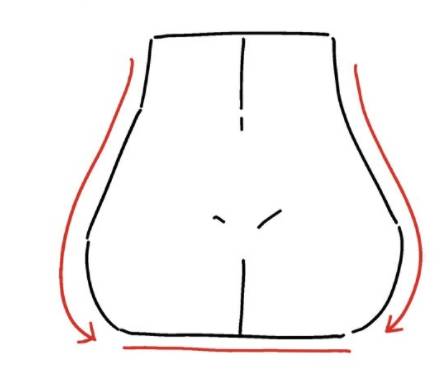 坐姿的时候臀部朝下,腰部的形状并不会很突出,也不会形成壶状。