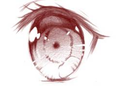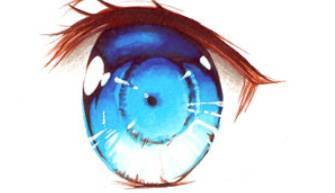 瞳孔及周边区域的高光,还是使用硬边的线条刻画。最后,在眼白区域绘制柔和的阴影。