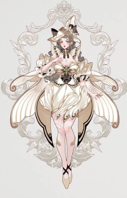 这里我主要结合的是这两张参考,一个首饰,一个时装既带有昆虫的轮廓特征,又不完全是昆虫的样子,产生了一定的形变。将这两个轮廓结合起来就大致出现了一个人形,下面就简单粗暴的把人物塞进这个轮廓里就好咯~