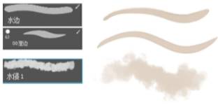 二分阶段我们就要开始往水彩的方向走咯~主要用的就是带有水边和浸润效果的这几种湿边笔刷,平时也是比较常见的。